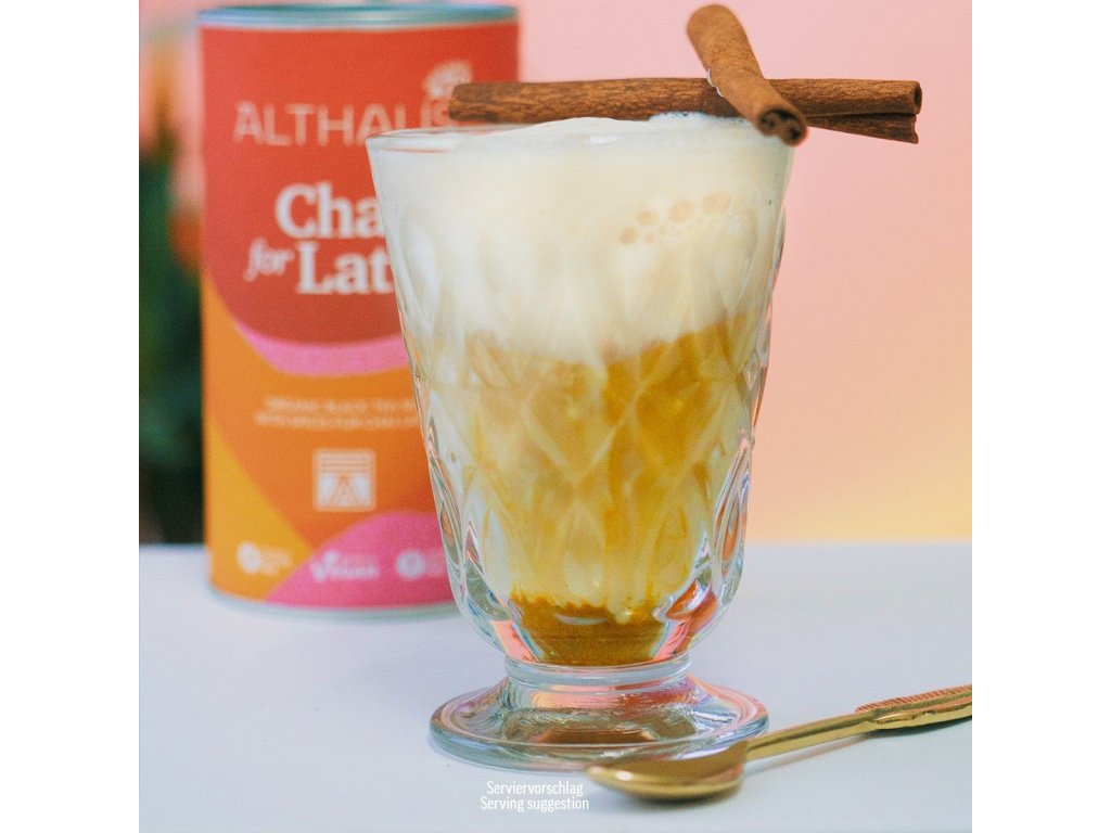 The perfect balance of flavor is ensured by the unobtrusive sweetness of ground coconut blossom sugar. It perfectly complements the warm sharpness of the original Indian ingredients (ginger, cinnamon, black pepper) that define Chai. Turmeric and cardamom harmoniously finish the Chai Latte.