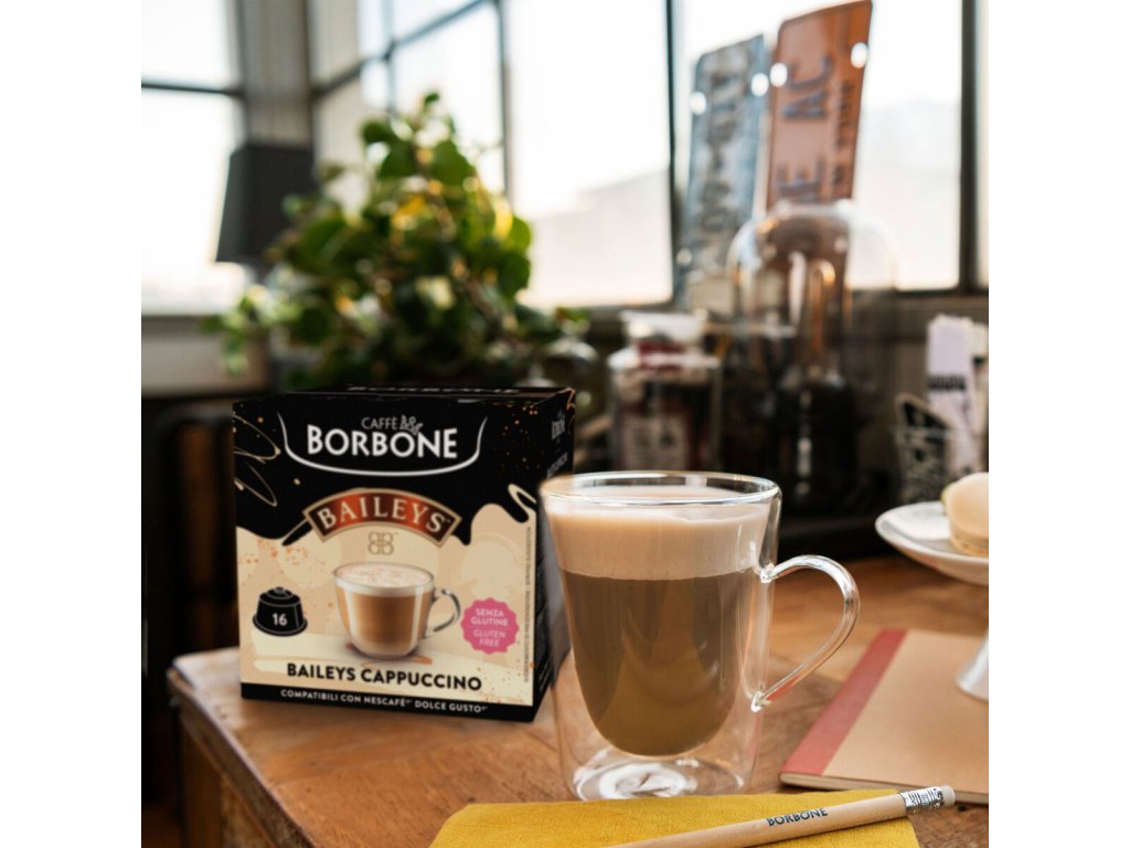 Cappuccino meets Baileys in a warm embrace of flavors where coffee plays the leading role. With the new Borbone Baileys capsules, you can treat yourself to a break that goes beyond the usual flavors.