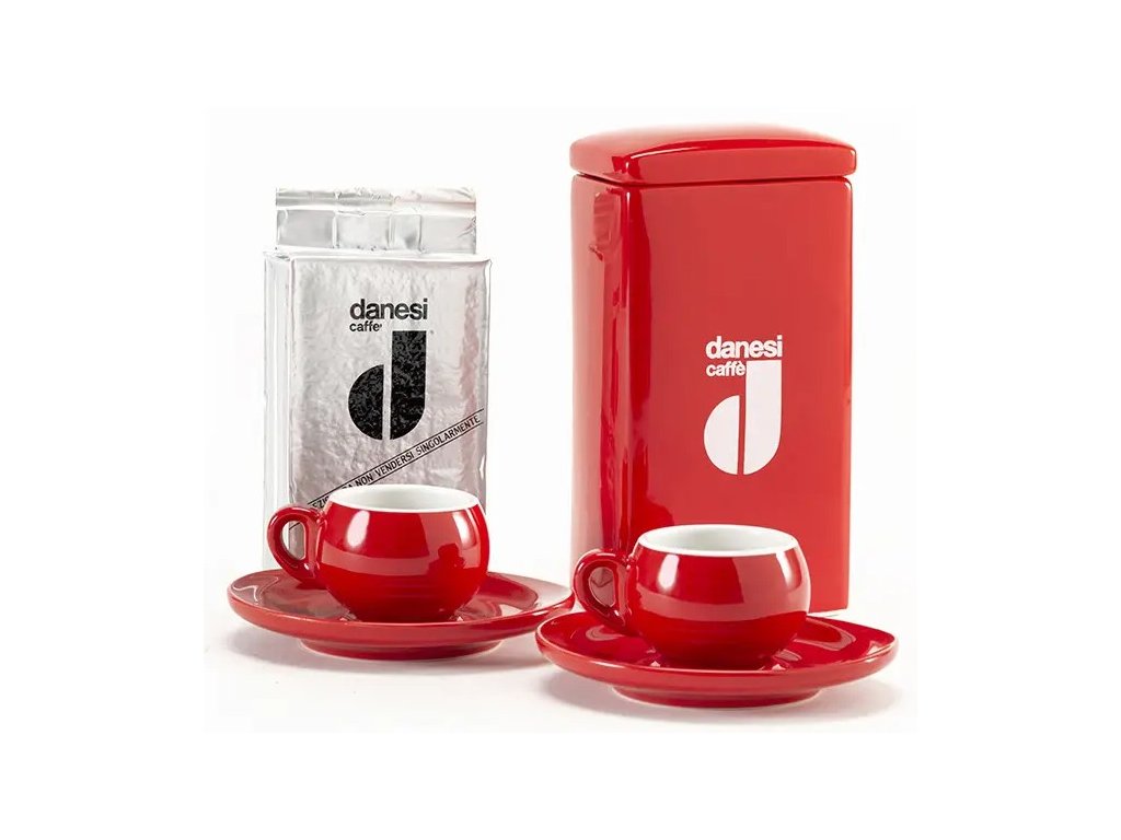 Danesi Duo Plus Set Red - Dark Coffee Cassette 250 g + 2 cups and 2 saucers - red