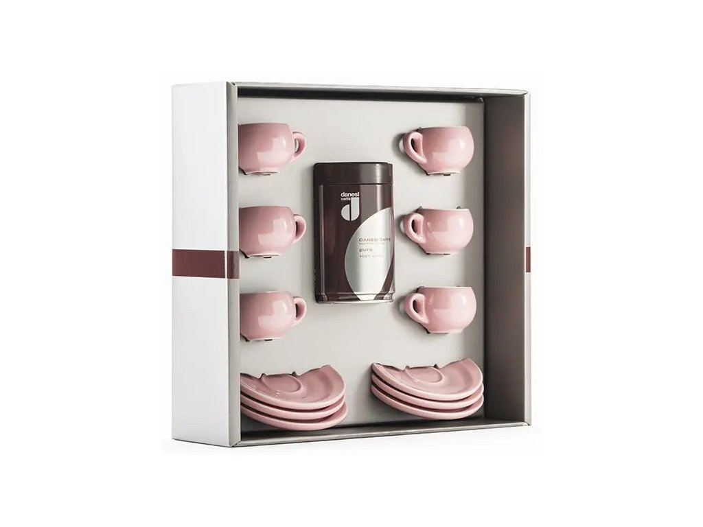 Danesi La Forma Sprint Gift Pack - Dark's Cassette Kava 250g + 6 espresso cups and 6 saucers - pink