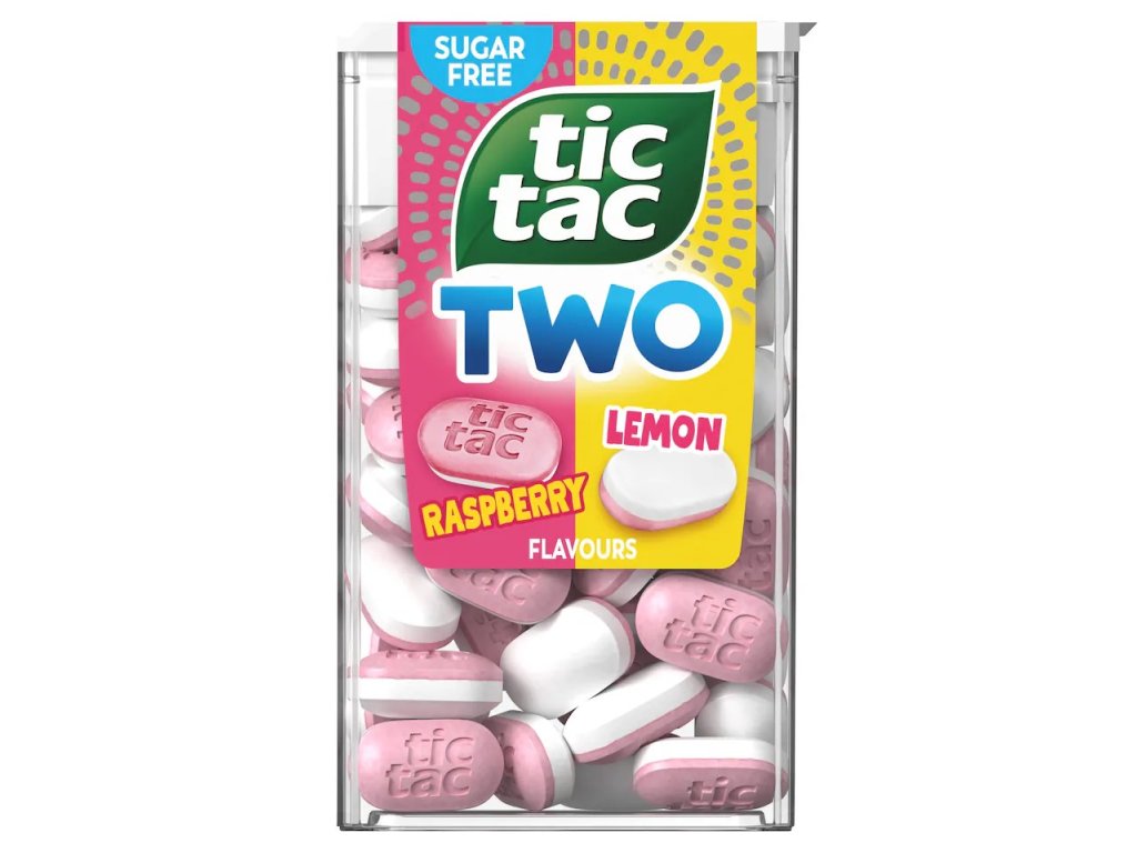 The Tic tac Two Strawberry & Lemon series is built on the principle of playful contrast, which creates an exciting taste dialogue in the mouth. In these mini dragees, you do not encounter just one flavor, but two opposites that complement each other perfectly. On the one hand, there is the delicious sweetness of carefully selected, fully ripe raspberries , which brings a delicate and juicy base. However, it is immediately opposed by the energetic, spicy acidity of fresh lemon , which adds sparkle and freshness. It is this combination of sweet and sour - fruity fullness and citrus sharpness - that results in a surprisingly refreshing taste experience . Each combination of these two mini dragees thus offers a small explosion of flavor that is unpredictable and yet perfectly harmonious.